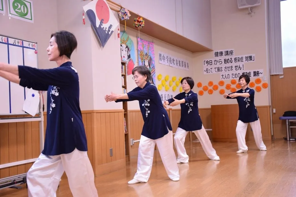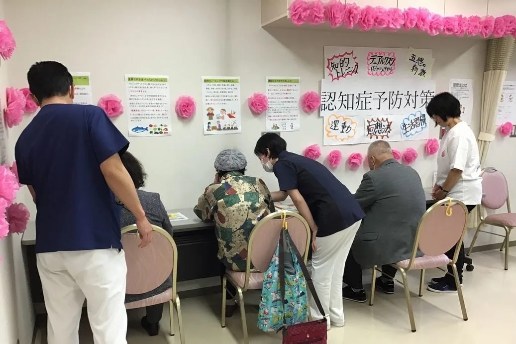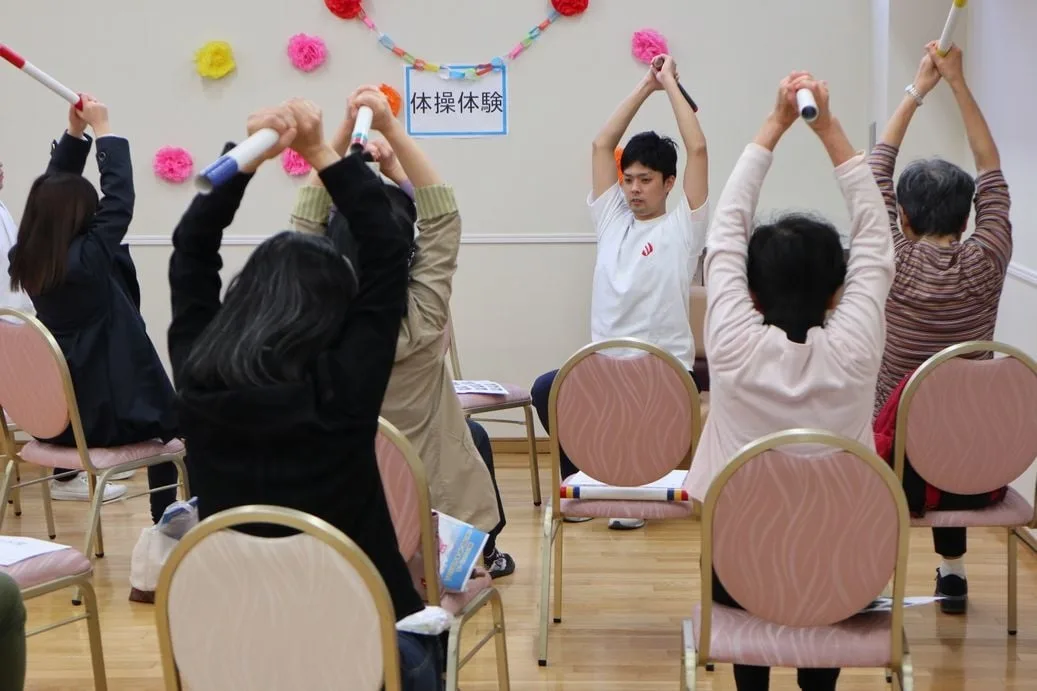 今回は「人生100年時代 ~今日から始める健康貯金~」をテーマとして、動脈硬化、内臓脂肪、骨密度、腎臓の検査や血管年齢測定といった「健康度チェック」や、健康講座、健康体操をはじめ、新たに「飛天の舞、花架拳」「歩行年齢チェック」も加え、合計23のコーナーで終日賑わいが見られました。