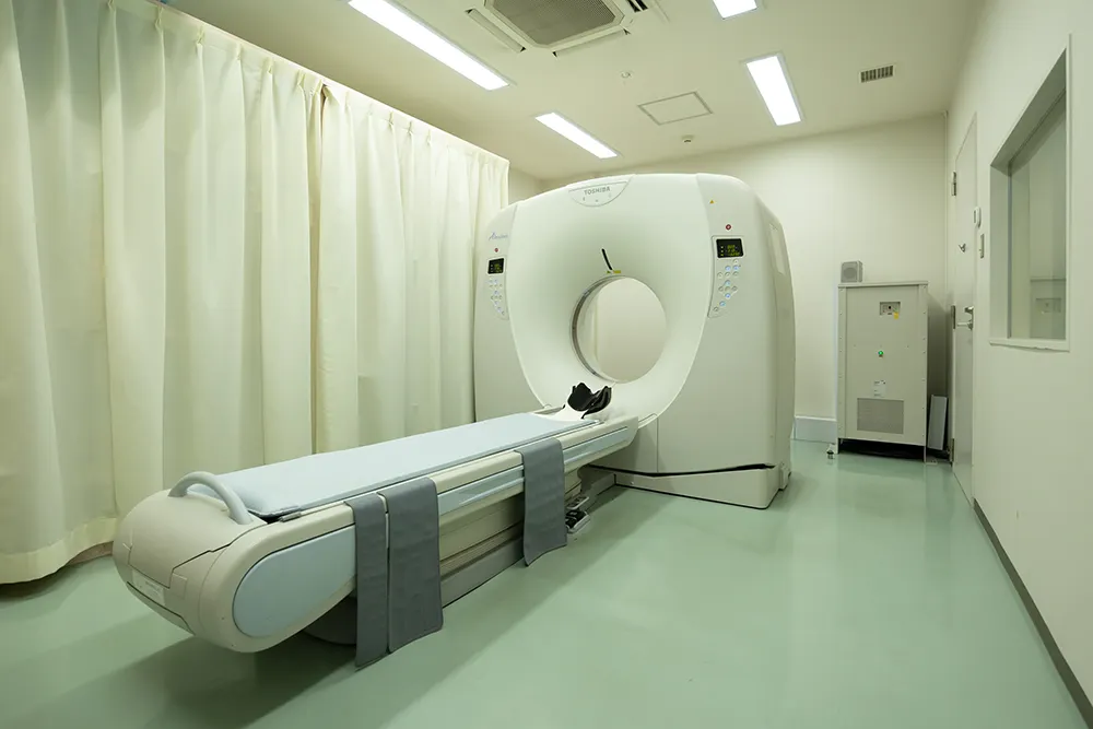 CTでは主に頭部、胸部、腹部の撮影を行っています。CTとはComputed Tomography(コンピュータ断層撮影)のことで、X線装置が体の回りを回転しながら撮影し、そのデータをもとにコンピュータで計算することにより、横断像を得ることができる検査です。