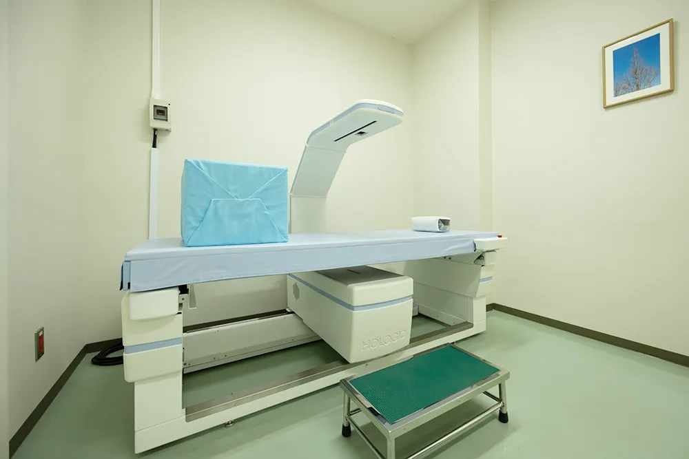 腰椎は骨代謝が盛んである海綿骨の情報を多く含んでおり骨粗鬆症の診断に役立ちます。その他にも大腿骨・前腕骨でも測定が可能です。