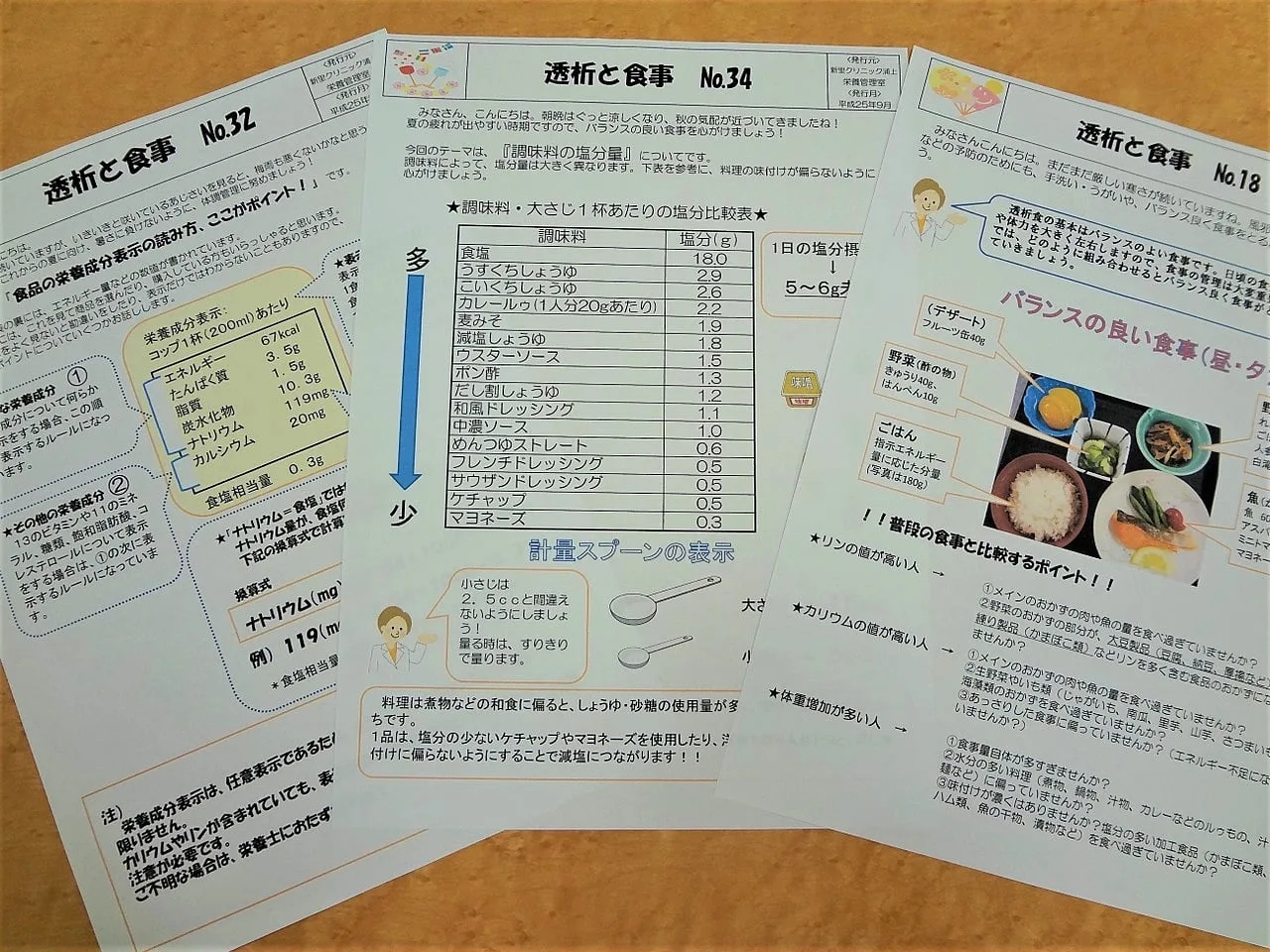 適正エネルギー・たんぱく質の摂取、カリウム・リン・塩分・水分などの制限に配慮しながら、患者さんに満足していただける食事の提供を目指しています。