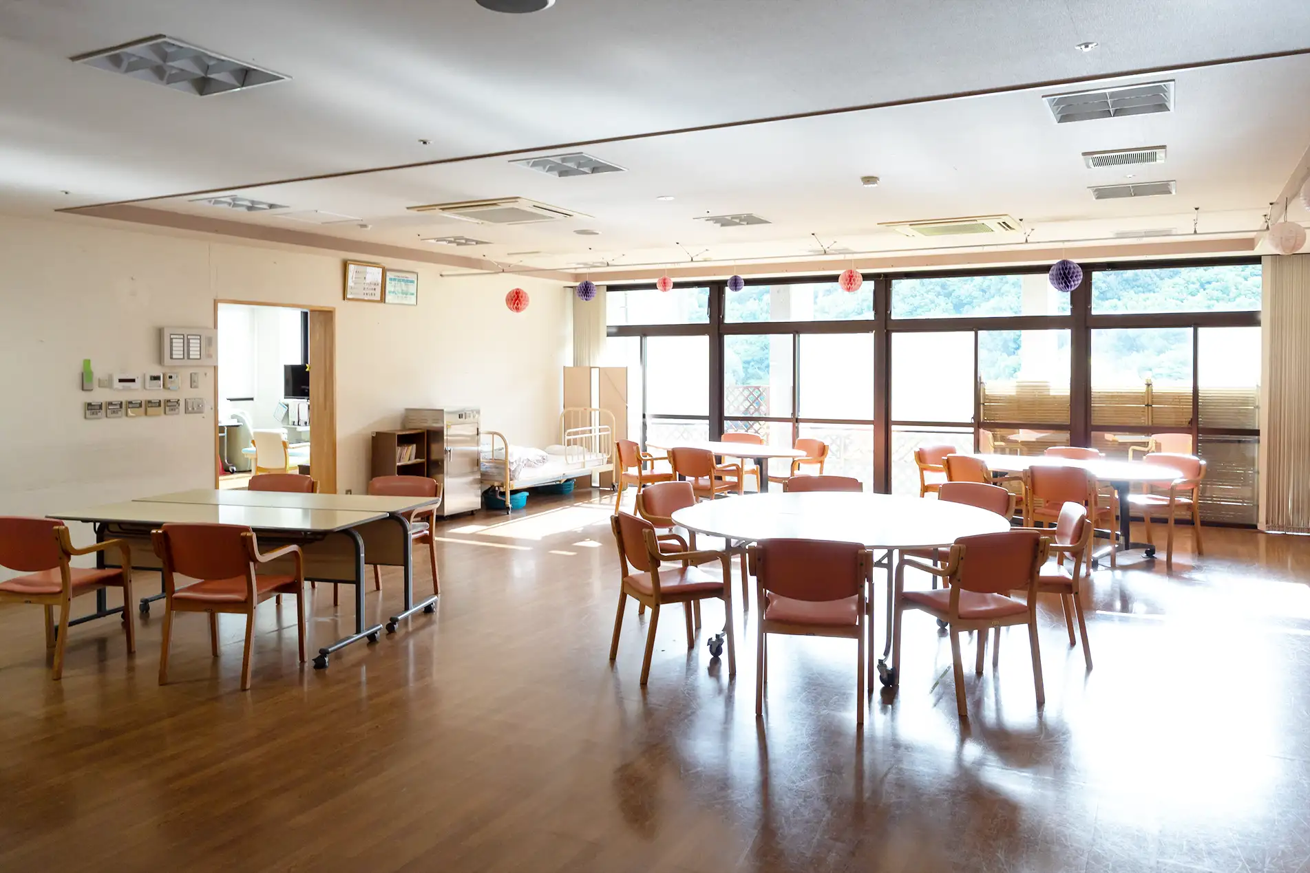 室内には、テーブルとゆったり座れる椅子を設置しています。お食事や手作業など、ご利用者の交流の場です。
