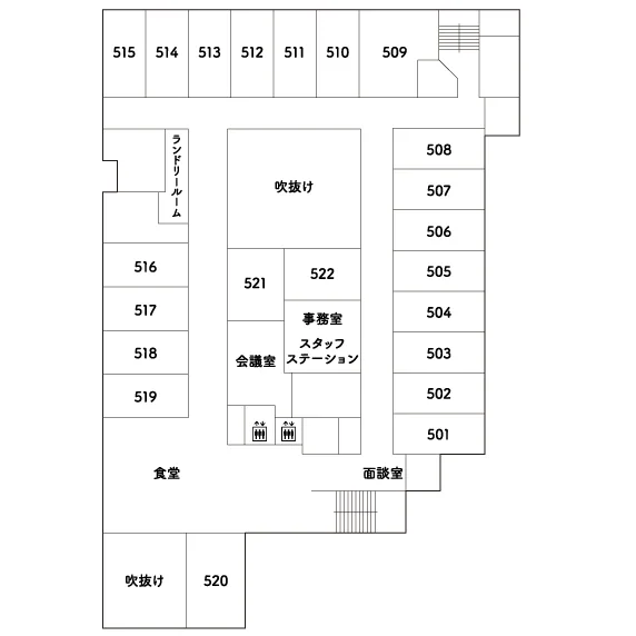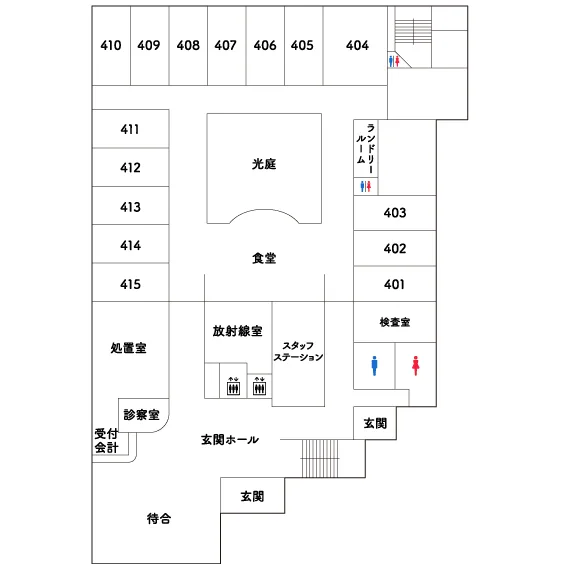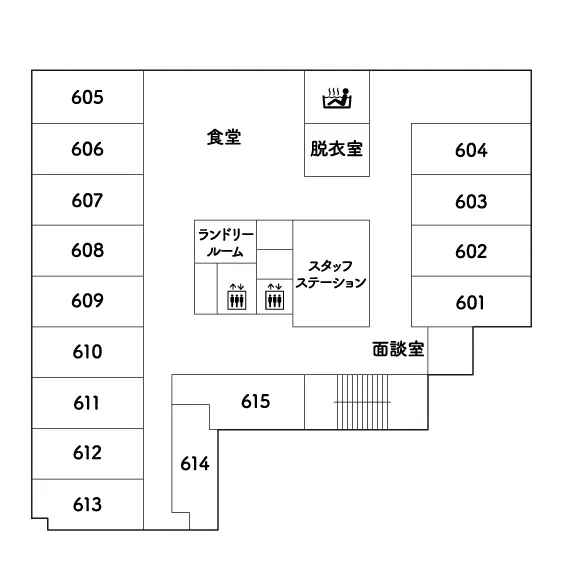 新里メディケア城山台の4~6階が、プラチナライフ新里城山台のフロアです。稲佐の森に抱かれた緑豊かな環境で、新鮮な空気が身体も心も癒してくれます。当グループが運行している無料シャトル便をご利用いただけます。